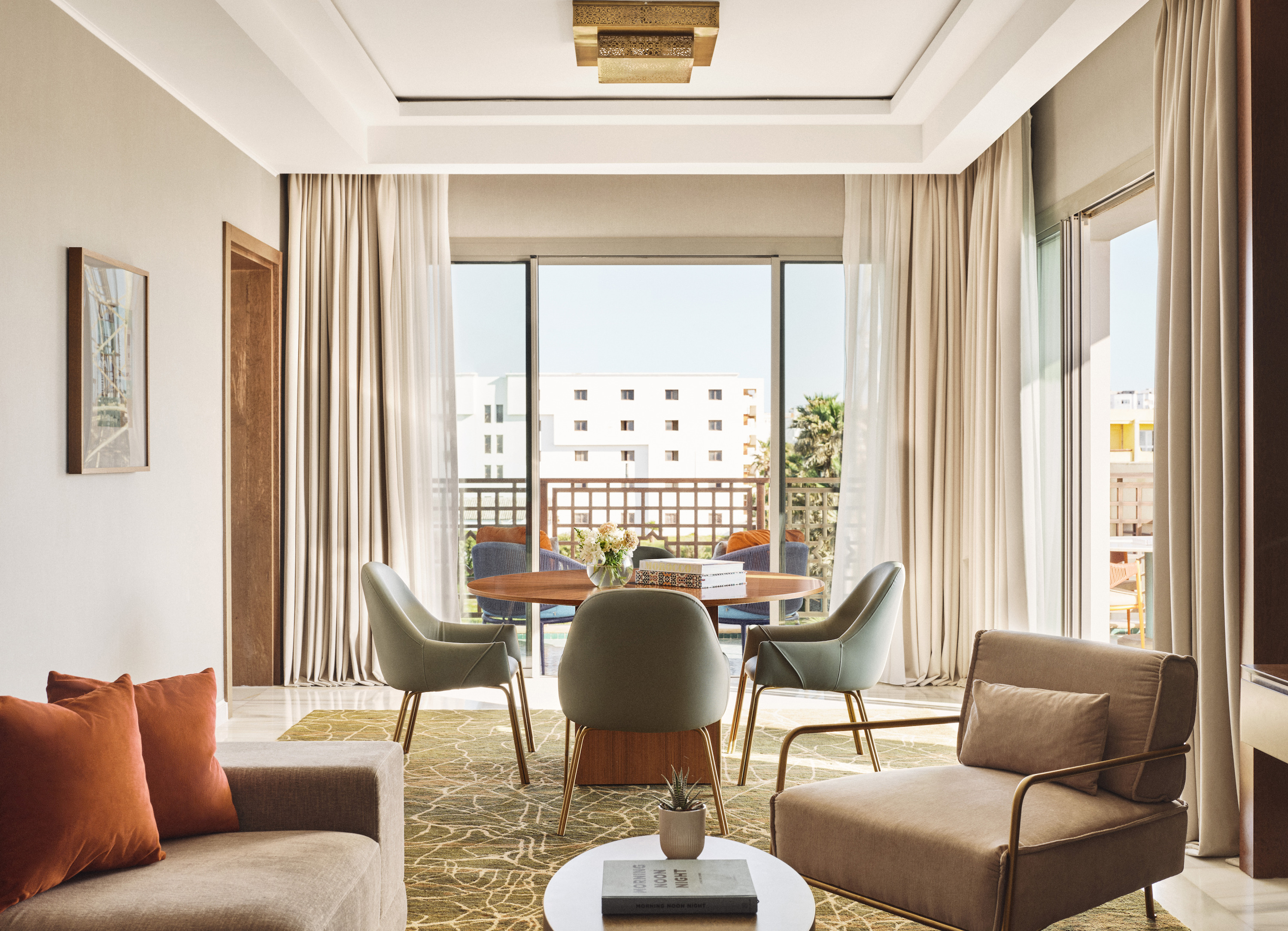 Avec son élégance intemporelle, cette suite dispose de vastes espaces pour recevoir votre famille, vos amis ou vos associés. Elle se compose notamment d’une entrée avec placard, d’un salon aux dimensions généreuses avec table à manger pour quatre personnes, ainsi que d’un balcon aménagé.