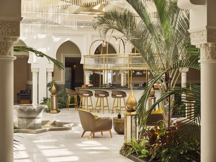 Baigné de lumière et situé au beau milieu d’un écrin de verdure avec une magnifique fontaine, cet oasis enchanteur accueille les hôtes dans le hall de notre hôtel. Laissez-vous tenter par des rafraîchissements, des pâtisseries marocaines ou encore par un « afternoon tea » à l’anglaise.