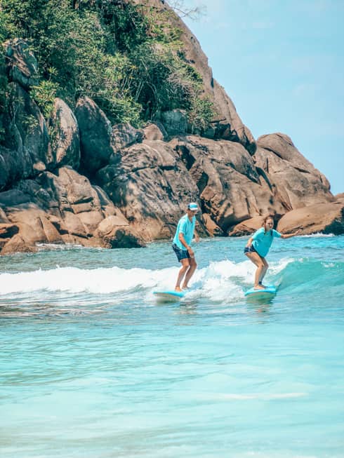 Découvrez le surf de classe mondiale avec Tropicsurf, l'expert local de tous les spots aux environs du Four Seasons Resort Seychelles. Ses moniteurs professionnels vous proposent des conseils personnalisés lors de sessions sur mesure, avec un accès privilégié aux meilleures vagues, dans des conditions optimales. Vivez une expérience de surf inoubliable, en parfaite harmonie avec la beauté préservée des Seychelles.