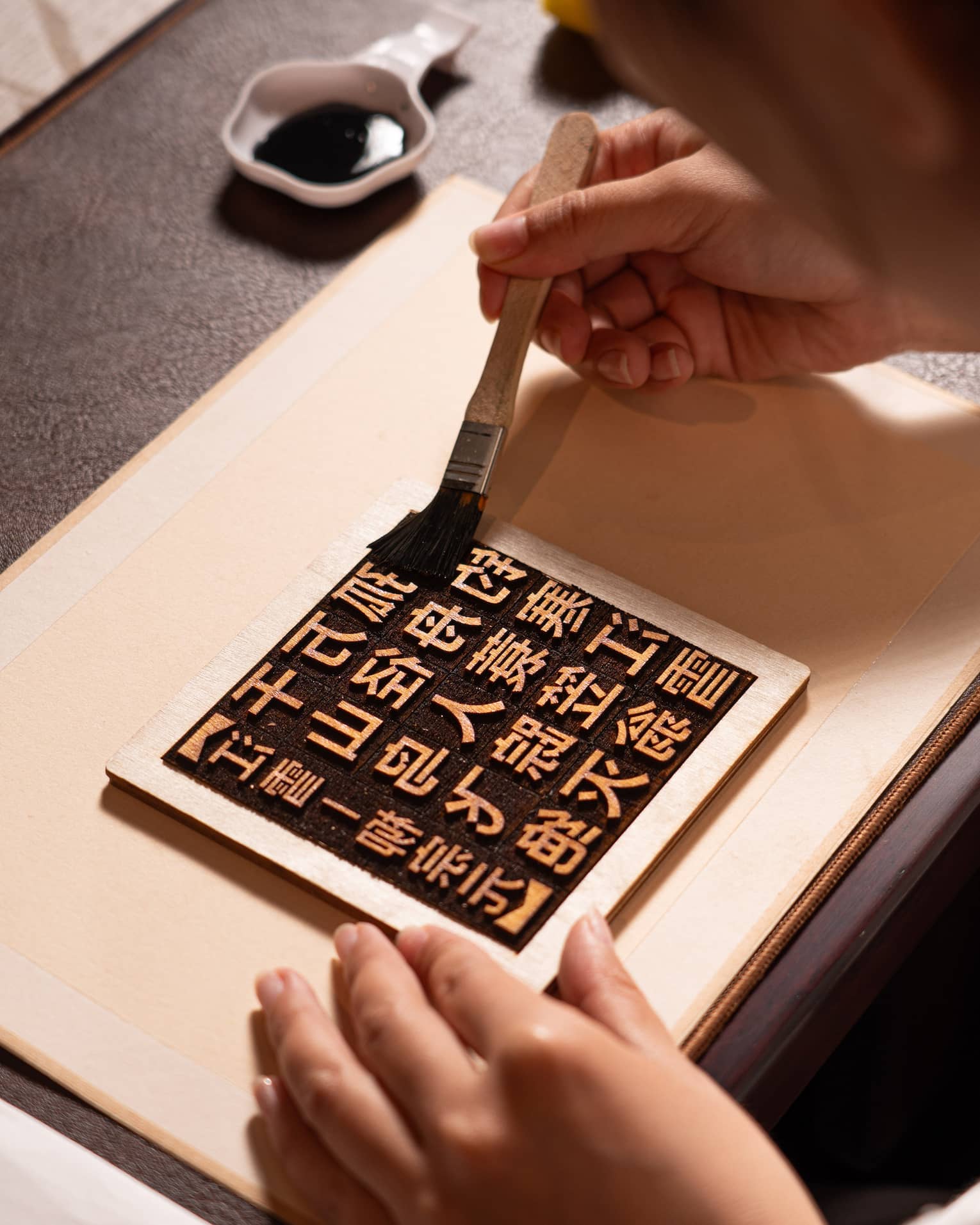 Movable type printing was invented by Bi Sheng in the Northern Song Dynasty. Using clay to form characters and ink as their soul, he turned Chinese characters into dynamic stars. This is one of the Four Great Inventions in ancient China. First, you'll create a character model for individual words, then select the characters according to the manuscript, arrange them in a tray and print them with ink.