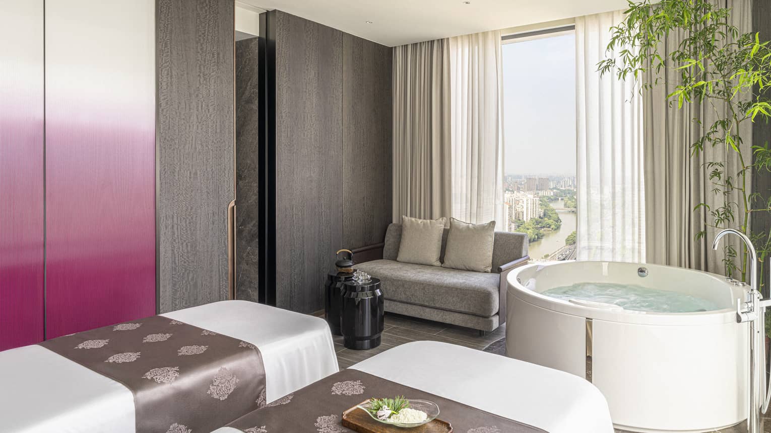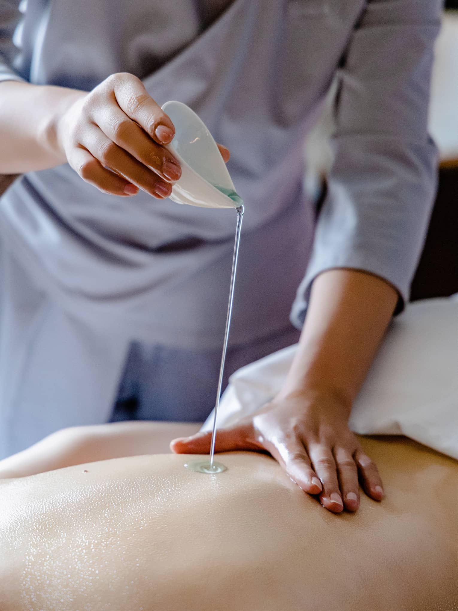 Begin with a calming foot bath, followed by a blue eucalyptus scrub to awaken skin and senses. Experience the purifying Dornbracht Aquamoon rainforest steam, then a sound-resonance massage with eucalyptus oil and birch sticks harmonized with soothing vibrations. A silk-bamboo scalp ritual completes your journey, evoking serenity and restoring balance with every breath.