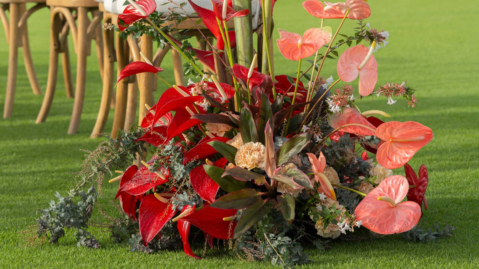 Floral ArrangementsVarying shades of red anthuriums, delicate orchids, and dramatic ginger blooms add a local, stunning tropical touch to your wedding decor.