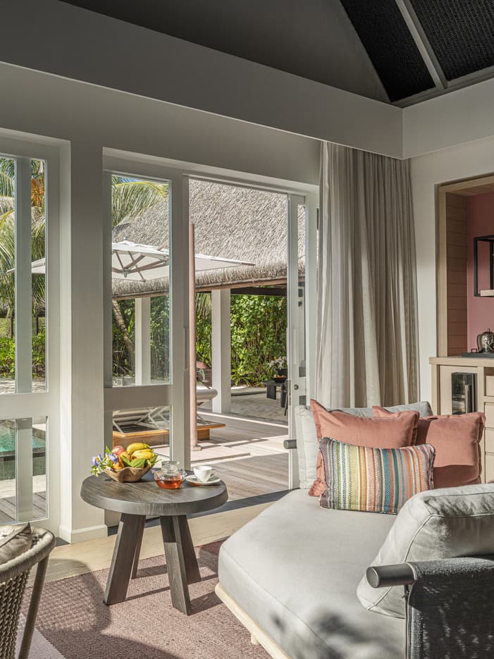 Rientrate dalla spiaggia alla vostra Beach Villa direttamente, attraverso il vostro cancello turchese, all’interno si trovano la lunga piscina privata dotata di divano-letto con cuscini, il padiglione aperto in cui si trova la zona living e la sala da pranzo, la camera da letto in stile locale, tutto circondato da rigogliose piante tropicali.