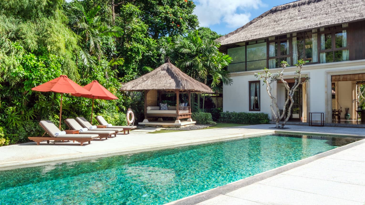 Our ultimate sanctuary features two ensuite bedrooms in the main two-storey residence and two more by the private pool