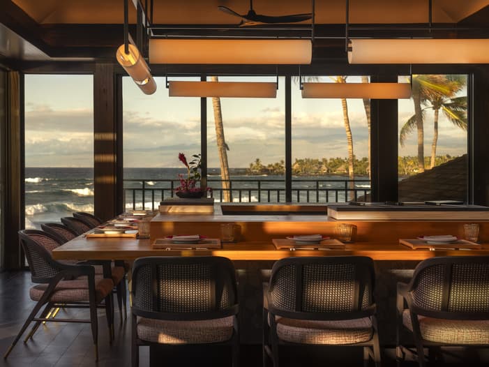 至福の美食体験を楽しめる、セレブリティシェフのタイラー・フローレンスがプロデュースするレストラン。2025年のイリマ・アワード(ベスト・ネイバーアイランド・レストラン)とハレ・アイナ・アワード(ベスト・ハワイアイランド・レストラン)に選出された実力派で、極上のステーキや新鮮な魚介を取り揃えたローバー、サステナブルな方法で漁獲された近海産のシーフード、農場直送野菜など、ハワイ島産の食材を使用したこだわりのメニューをご提供しています。ソムリエ厳選ワインや季節のカクテルと共にお愉しみください。