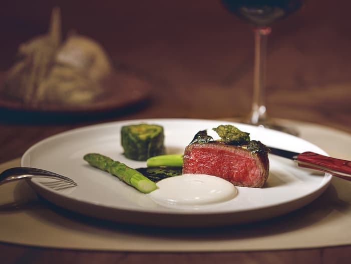シェフのこだわり熟成肉最高品質のアメリカ産リブアイステーキ、鹿児島黒毛和牛のサーロイン、国産牛のTボーンステーキを炭火で焼いてご提供。丁寧に自家熟成した力強い味わいと肉質をご賞味ください。
