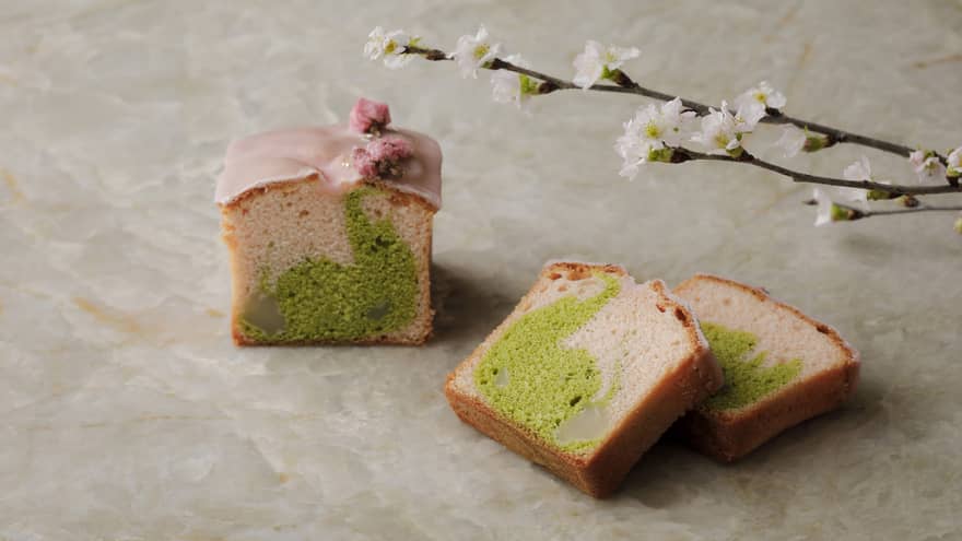 桜抹茶パウンドケーキほろ苦い宇治抹茶に桜の風味を合わせたパウンドケーキは、生地の中に隠れる白餡をアクセントに、桜の開花を思わせる、贈り物にもふさわしいひと品です。||期間:2026年3月1日(日)~5月31日(日)||時間:13:00~19:00||料金:4,200円/本(ギフトボックス付き)