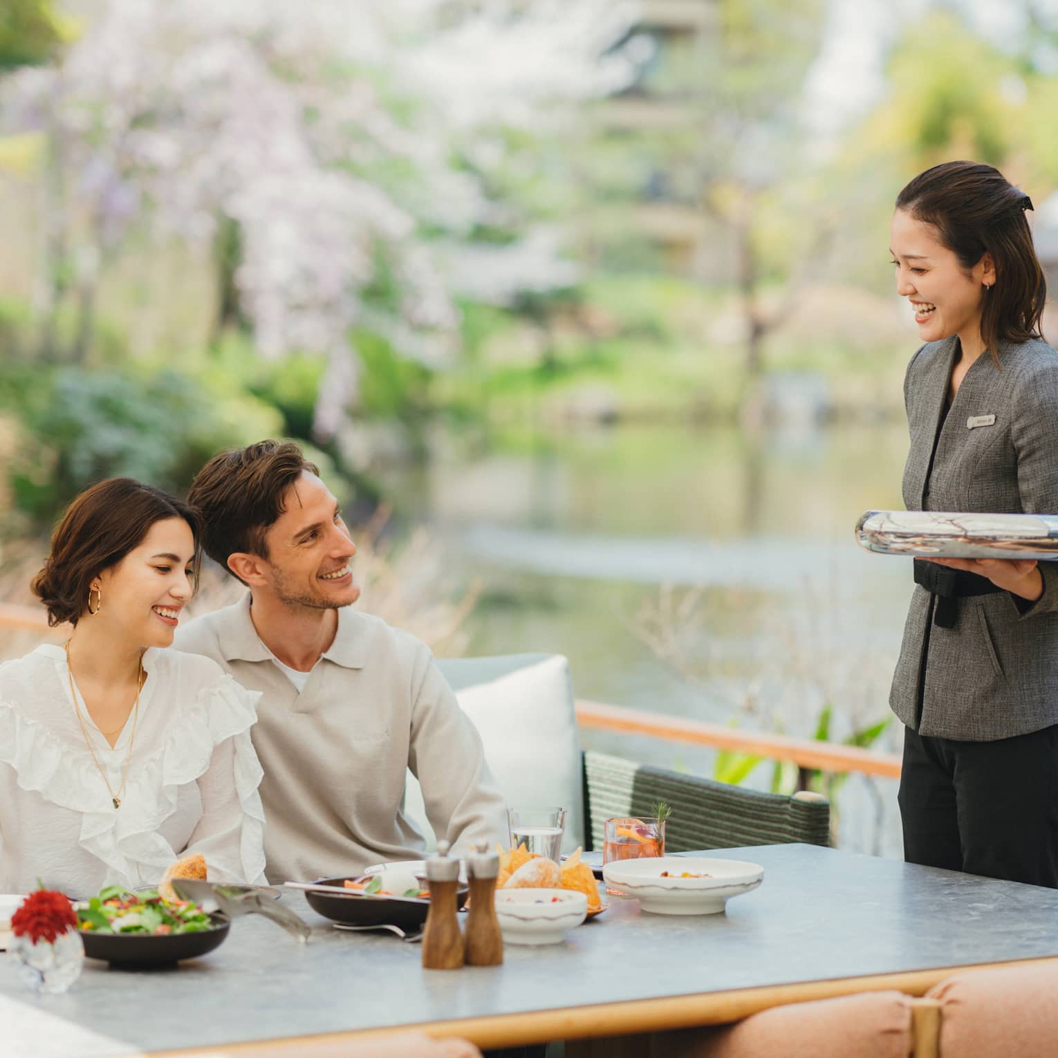約800年にもおよぶ歴史を持つ名庭「積翠園」には29本の桜の木があり、プライベートな空間でのお花見をお愉しみいただけます。早朝の散歩から鯉の餌やりまで、特別なひとときをお過ごしください。