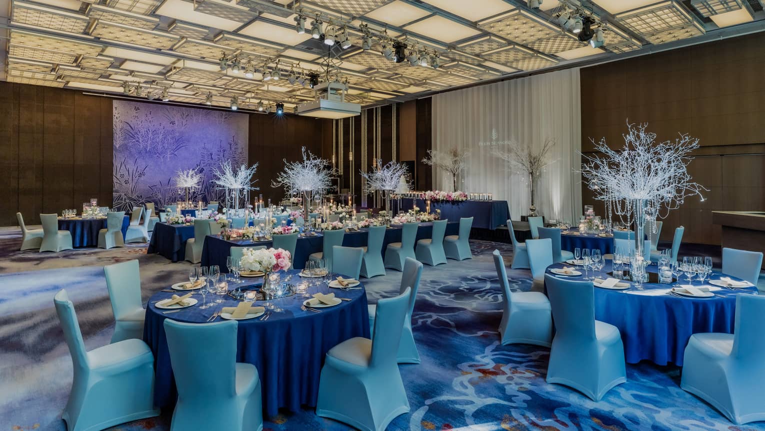 西陣織のタペストリーが印象的なエレガントな空間は、会議や80名様までご利用頂ける会食など様々な目的に対応した会場です。