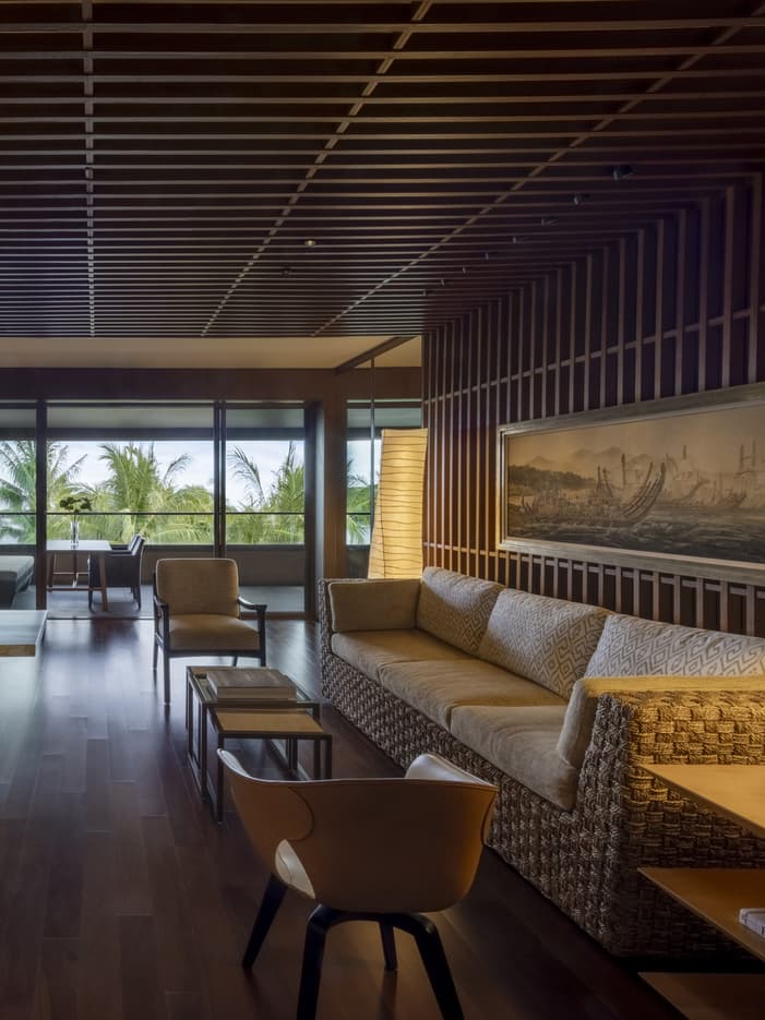 本館のペントハウスフロアに位置するスイート。広々としたリビングルーム、ダイニングエリアが備わり、ご家族でのご利用にぴったりです。湾に面したラナイのデイベッドから瞬く星空を眺める夜は、ずっと心に残る思い出になるでしょう。