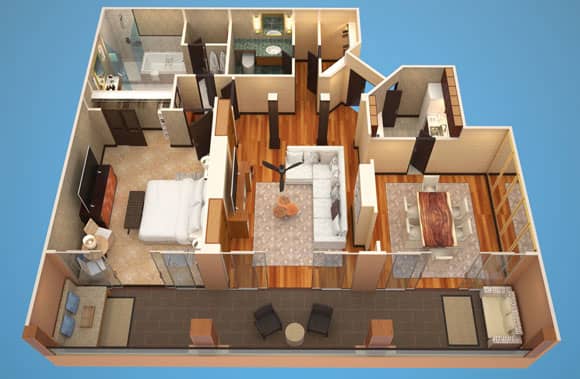 - 1ベッドルーム:168 m2(1,809 ft²)| 2ベッドルーム:275 m²(2,961 ft²