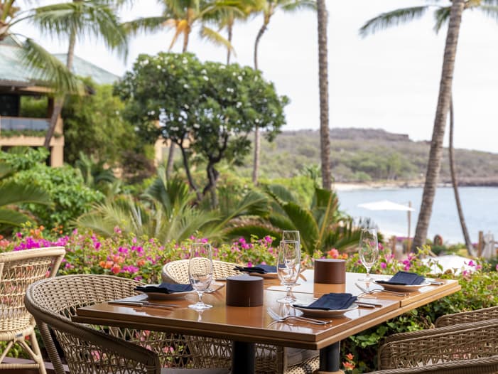 湾を望むカジュアルなプールサイドバー。爽やかな潮風に吹かれながら、ハワイのクラシックな前菜「ププ(pupu)」をはじめ、自家製トロピカルカクテル、地ビール、充実したワインリストなど、ラナイ島ならではの大胆なメニューをお楽しみください。