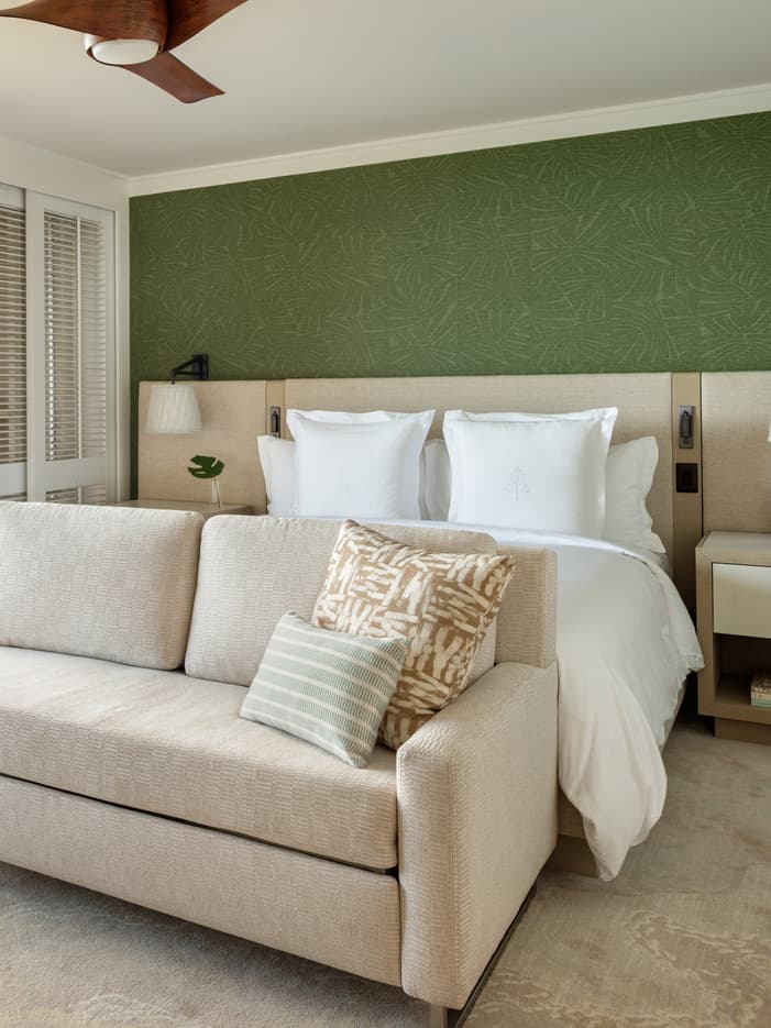 プライベートラナイ (バルコニー) とゆったりした室内から、遮るもののない海を一望できます。ハワイらしいカラフルなインテリアと、伝統的なデザインからインスピレーションを得たモダンなアメニティが見事に調和しています。このスイートにご宿泊のお客様は専用のクラブラウンジをご利用いただけます。