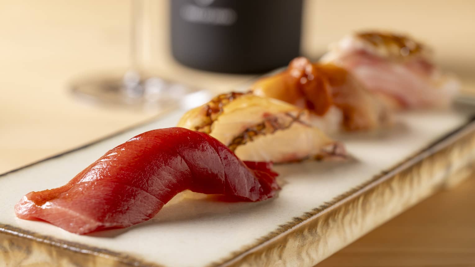「鮨 ラビス 大阪 ヤニック・アレノ」では、フランスにてミシュラン3つ星レストランを2軒もつヤニック・アレノ氏と、料理人歴30年以上の安田至料理長が手掛ける、フレンチと江戸前高級寿司が融合した料理をお愉しみいただけます。