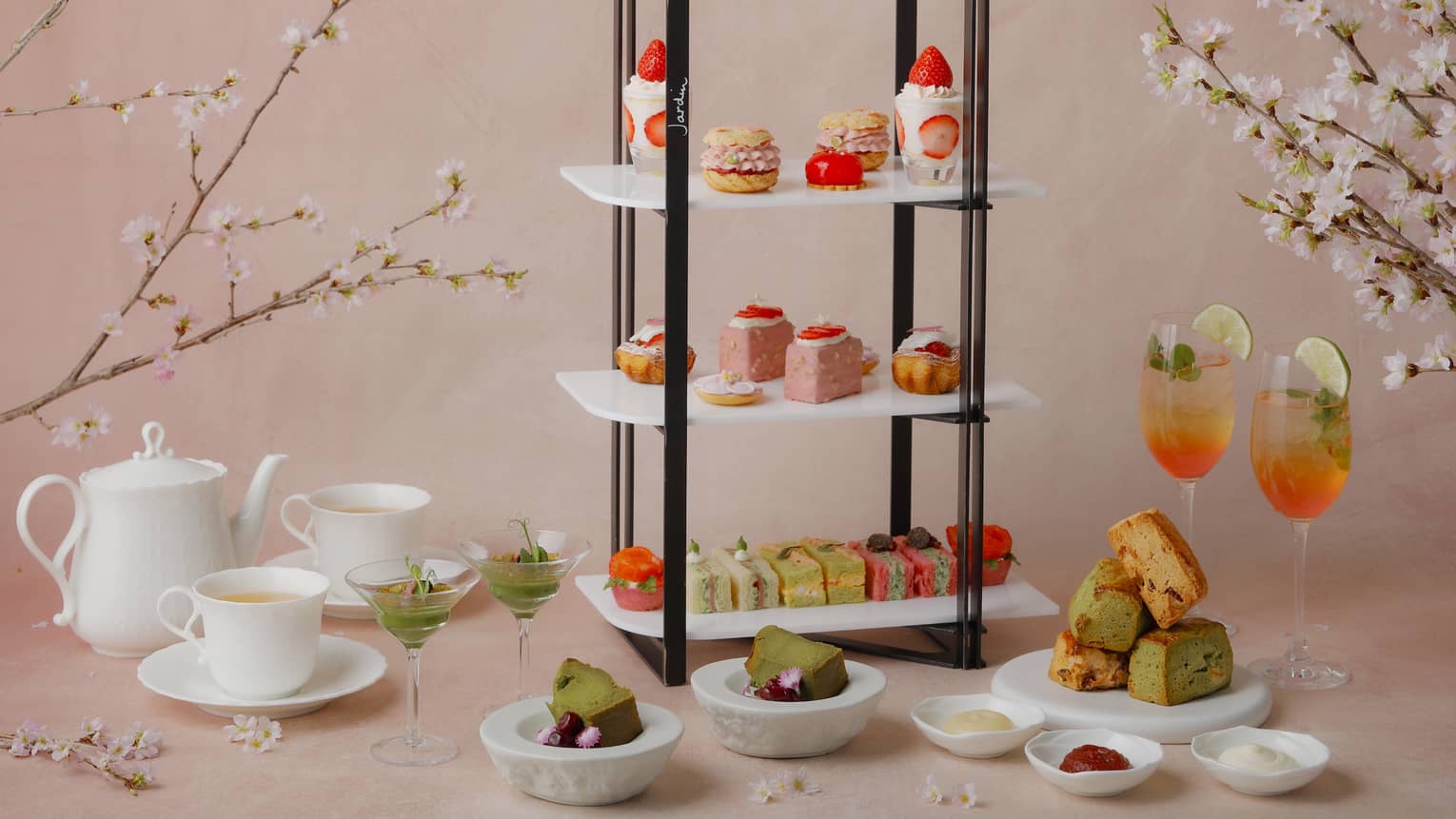 苺大福風デニッシュやパリ・ブレスト、チーズケーキなど、苺・桜・抹茶が織り成す優雅なスイーツをはじめ、桜鱒など春の恵みを生かした繊細なセイボリー、国産牛ローストビーフや奥丹波鶏を用いた上質なサンドイッチトリオまで、趣向を凝らした多彩なセレクションをご用意いたしました。彩り豊かな味わいと食感を、紅茶やフレーバーティー、コーヒーなど全15種のフリーフローとともに、春爛漫のひとときを心ゆくまでお楽しみください。||期間:2026年4月3日(金)~30日(木)||時間:12:00~19:00(最終入店 17:00、2時間制)||料金:平日 8,800円 / 土・日・祝日 9,600円