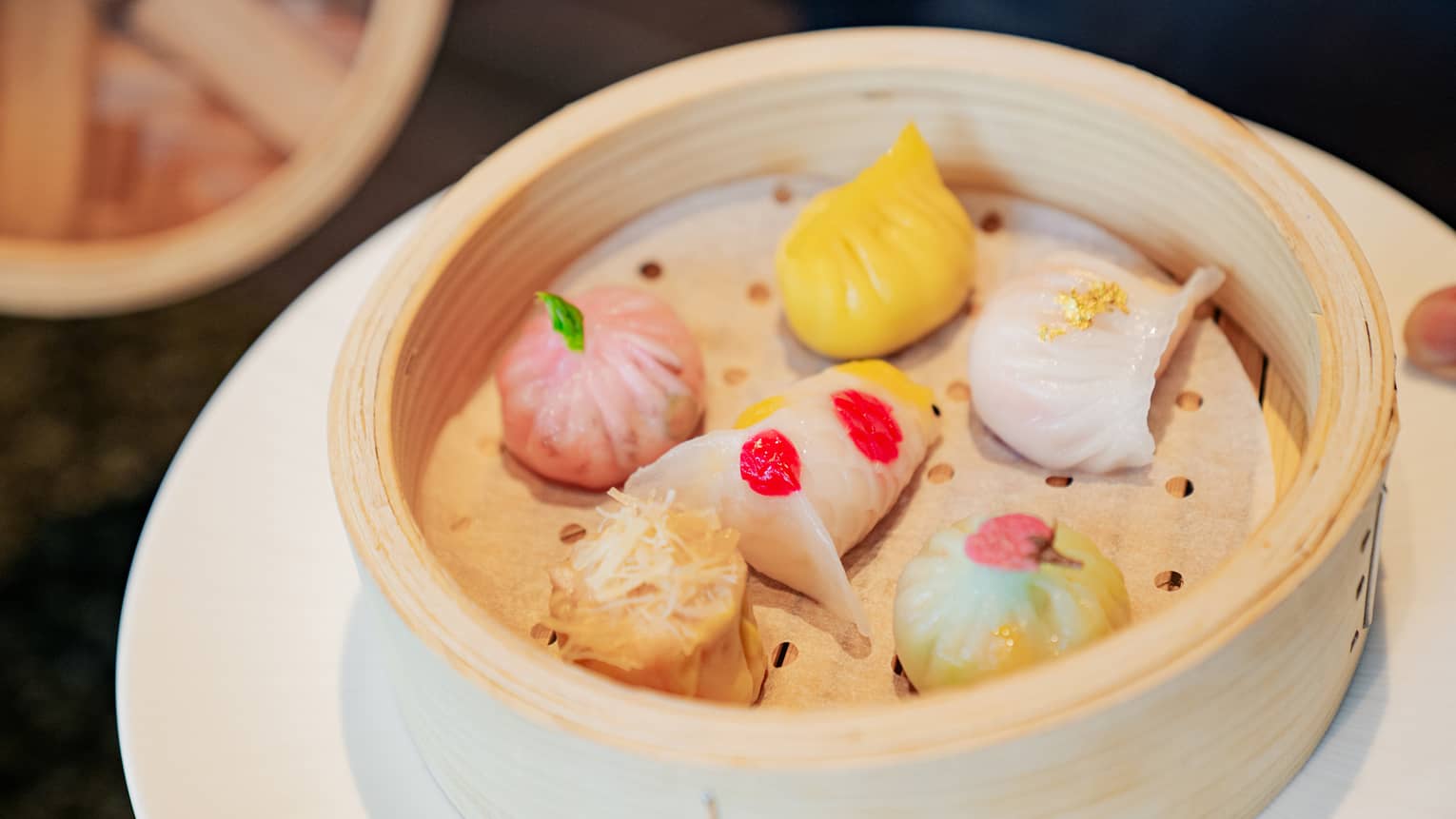 点心筍と海老の蒸し餃子(左)、海老と白身魚の蒸し餃子(右)