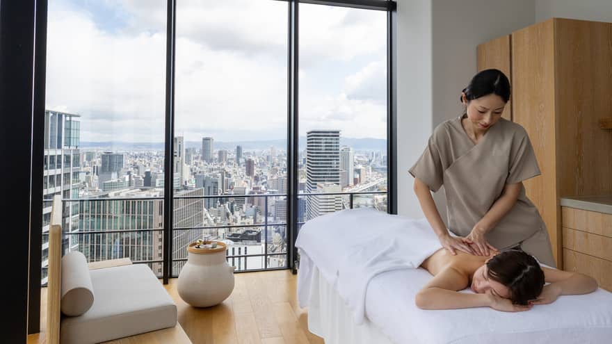 バレンタイン期間限定スパトリートメントパッケージ受賞歴のあるシグネチャートリートメント「大阪センサリーエスケープ」(90分)で五感を解き放ち、大阪の街並みを一望できるプライベートバス(60分)で深い寛ぎのひとときを。リフレッシュメント付きの、カップルで心と身体を満たす、特別なウェルネス体験をご用意しました。||期間:2026年2月1日(日)~14日(土)||時間:10:00~21:00||料金:1組2名様 100,000円