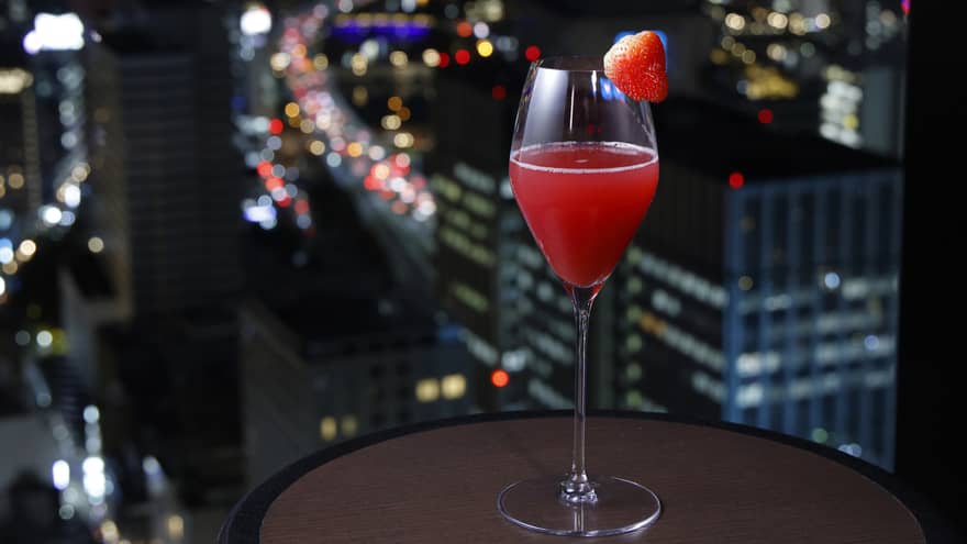 バー・ボタ:桜&ストロベリー ロッシーニバレンタインデーまでの2週間限定で、バーマネジャー マキシム・ヴェリエが手がける、桜の香りと甘酸っぱい苺を繊細に重ねた特別なカクテル「桜&ストロベリー ロッシーニ」をご用意しました。大阪の夜景を望むラグジュアリーな空間で、恋人と過ごすロマンティックなひとときを優雅に彩る一杯です。||期間:2026年2月1日(日)~14日(土)||料金:2,000円