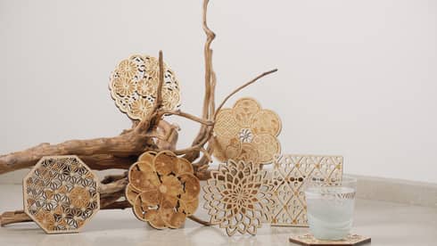 日本の優雅さを食卓に添えてくれる、縁起の良い伝統柄をあしらったヒノキ製コースター。天然の芳香と美しい職人技が際立ち、日常使いにふさわしい落ち着いた香りと、しっかりとした重みを兼ね備えています。