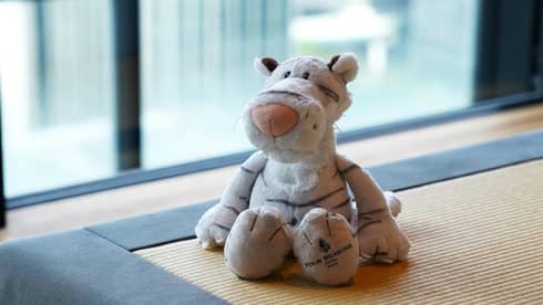 フォーシーズンズホテル大阪のマスコット、ホワイトタイガー「オスカー」のぬいぐるみです。西の守り神として古くから勇気と保護の象徴とされる白虎をモチーフに、オスカーは力強さと優しさを兼ね備えた存在。ふんわりとした手触りと愛らしい表情で、思いやりの心や互いを大切にする気持ち、そして子どもたちの成長と安全を願う思いを、そっと思い出させてくれます。