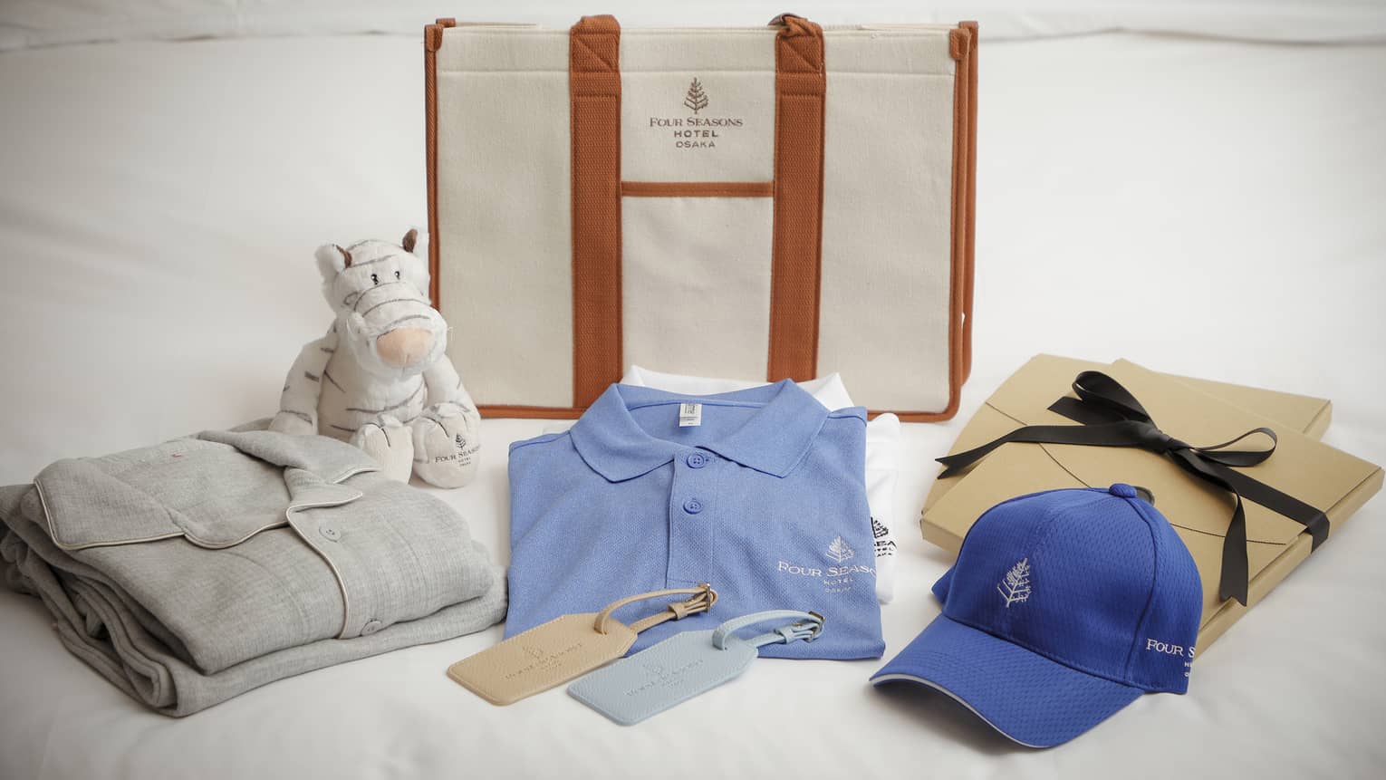 フォーシーズンズホテル大阪のロゴ入りアイテムや、関西の職人技や伝統、アートが息づく品々を集めた厳選ギフトセットをご用意しました。大切な方への贈り物やご自身へのご褒美に最適です。||価格:35,000円~(クリスマスハンパー)、ギフトアイテムや内容により価格は異なります。在庫がなくなり次第終了となります。