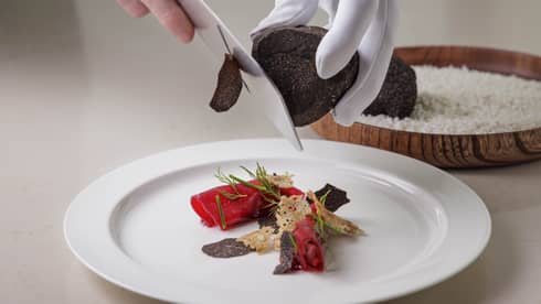 アニバーサリーやお誕生日、プロポーズなど、人生の中で深く想い出に残る記念日を最高の一日に。お祝い時をより一層特別に、トリュフの深い香りとともに、冬の恵みを存分にご堪能いただける黒トリュフコースをご用意しております。||期間:2026年1月10日(土)~2026年3月1日(日)||時間:12:00 ~ 15:00、18:00 ~ 22:00||料金:45,000円(8品)