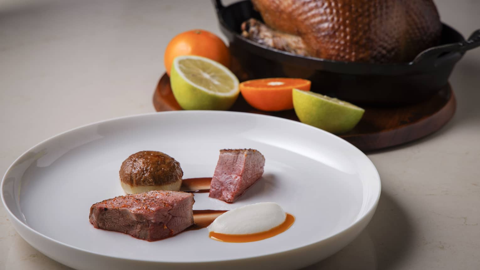 身が締まり、脂のバランスが絶妙な和歌山県産・紀州鴨を使用した一皿。 70日以上の長期飼育により、のびのびと育った鴨は、フランス産鴨を思わせる深い旨みと豊かな脂を蓄えています。 伝統的なフランスの鴨の調理法にあわせてオレンジやレモンを合わせることで、鴨の濃厚なコクに柑橘爽やかさが重なり、互いの持ち味を引き立たせております。||期間:~1月末まで||時間:12:00 ~ 15:00||料金:15,000円~