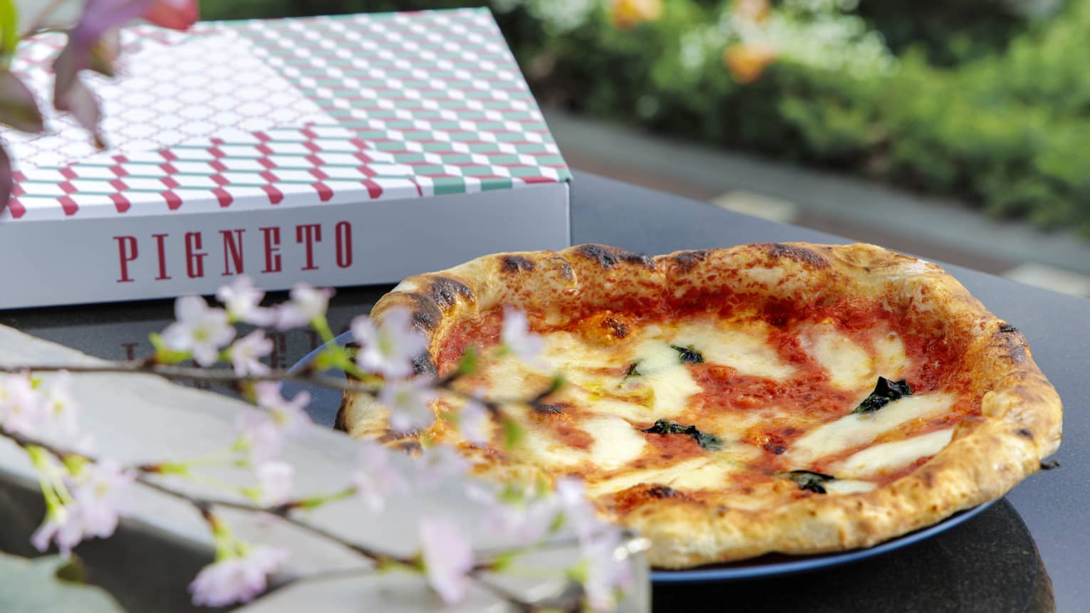 PIGNETO(ピニェート)のスペシャリティ ピッツァ シェフ、アレッサンドロ・ルカ・デ・レオが厳選した季節の食材を使用し、一枚一枚丁寧に焼き上げる本格イタリアンピッツァをテイクアウトでご用意。マリナーラやブッファリーナなどの定番はもちろん、5フォルマッジやブッラータといった人気メニューまで、バリエーション豊かに取り揃えています。イタリアの本場の味わいを、ご自宅やピクニックでお楽しみください。||期間:通年||お受け取り時間:11:45〜21:00(ご希望のお受け取り時間の 45分前までにご注文 をお願いいたします。)||料金:3,500円~