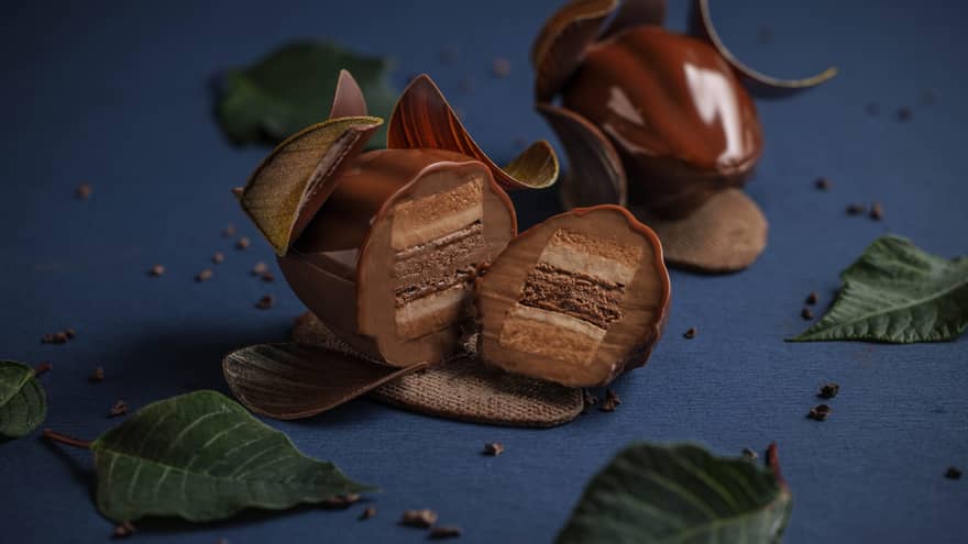 カカオリーフエグゼクティブ ペストリーシェフ ミケーレ・アッバテマルコが織りなすカカオの魅惑に、恍惚の境地へと誘う至高の味わい。カカオの原点に立ち戻り、その香りと生命力を純粋に表現した一品です。エクアドルとドミニカ共和国の肥沃な大地で育まれたオーガニック・シングルオリジンカカオを用い、大地と空をつなぐ「カカオの実と葉」の美しさを映し出しました。自然が描く優美な色彩のグラデーションを映したカカオの葉を象り、カカオの実からは繊細さと力強さが響き合うカカオの豊かな調和を感じていただけます。||ご予約期間:1月9日(金)〜3月28日(土)||お引受け期間:2月1日(日)〜3月31日(火)||料金:5,000円(縦10cmx横7cm×高さ6cm)