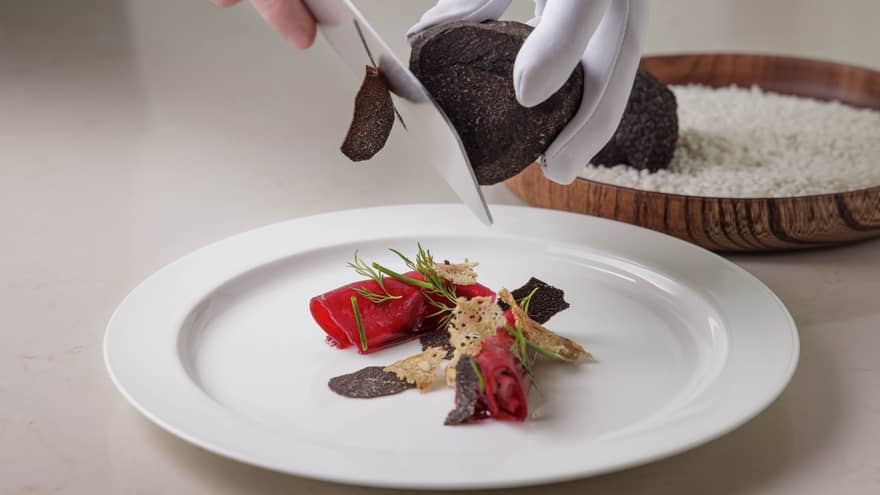 est(エスト):トリュフコースアニバーサリーやお誕生日、プロポーズなど、人生の中で深く想い出に残る記念日を最高の一日に。お祝い時をより一層特別に、トリュフの深い香りとともに、冬の恵みを存分にご堪能いただける黒トリュフコースをご用意しております。||期間:2026年1月10日(土)~2026年3月1日(日)||時間:12:00 ~ 15:00、18:00 ~ 22:00||料金:45,000円(8品)