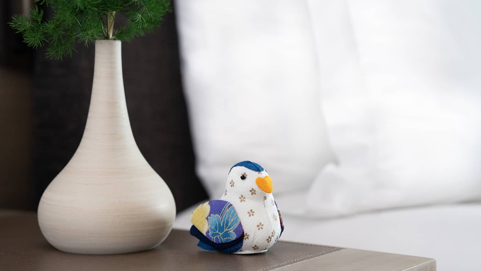 テディベアフォーシーズンズホテル東京大手町のロゴが右足に刺繍されたオリジナルテディベア。見た目はもちろん、ふわふわでついつい撫でたくなるキュートさ。ご滞在の思い出やプレゼントにどうぞ。