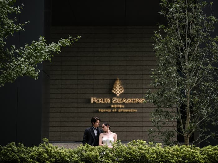 美しいアートと建築が広がる空間でのウェディングフォトにホテルステイが付いたプラン。
