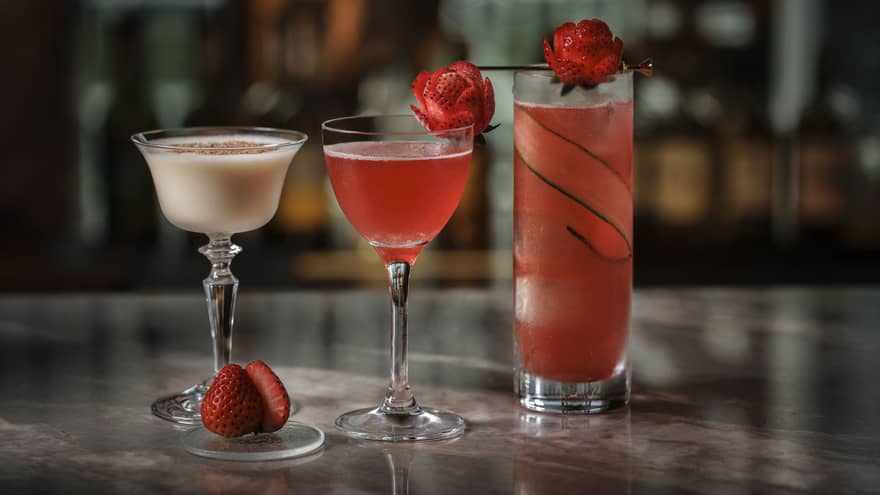 バー&シャンパンラウンジ:シーズナルカクテル 苺冬だけの特別なひとときに、苺をテーマにした3種のオリジナルカクテルをご用意いたします。バレンタインシーズンにふさわしく、苺の甘酸っぱさとチョコレートの艶やかなコクをリキュールと重ねた「チョコレートマーティーニ」や、ボタニカルなジンに苺とローズの華やかな香りを纏わせた「苺フィズ」など、バーテンダーが目の前で一杯ずつ丁寧に仕立てます。東京駅の赤煉瓦駅舎とライトアップされたビル群を望む幻想的なバーで、香りと余韻に浸るひとときをお愉しみください。||期間:2026年1月2日(金)~2月28日(土)||時間:11:00~23:00||料金:各種3,000円