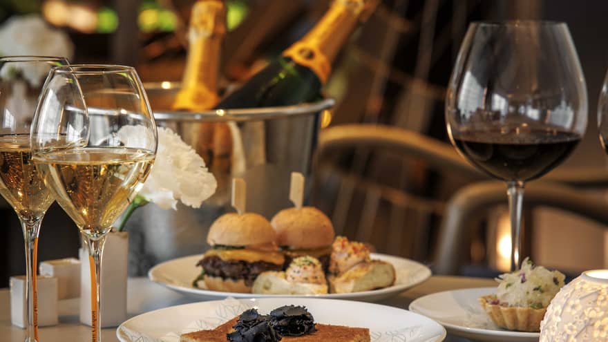 バー&シャンパンラウンジ:ニューイヤー・カウントダウンパーティーライブジャズが響くゆったりとしたシャンパンラウンジで、ヴーヴ・クリコ イエローラベルのフリーフローを片手に、新年の幕開けを華やかに迎えるカウントダウンパーティーを。ミニ和牛チーズバーガーや黒トリュフを贅沢に添えたフィンガーサイズのクロックマダム、毛蟹のタルト、オシェトラキャビアを飾ったデビルドエッグなど、豪華食材を惜しみなく用いたカナッペを出来立てでお持ちします。さらに、SÉZANNE(セザン)のペストリーチームが仕立てるデザートが、年越しのひとときをいっそう華やかに彩ります。||12月31日(水)||時間:22:00~||料金:35,000円