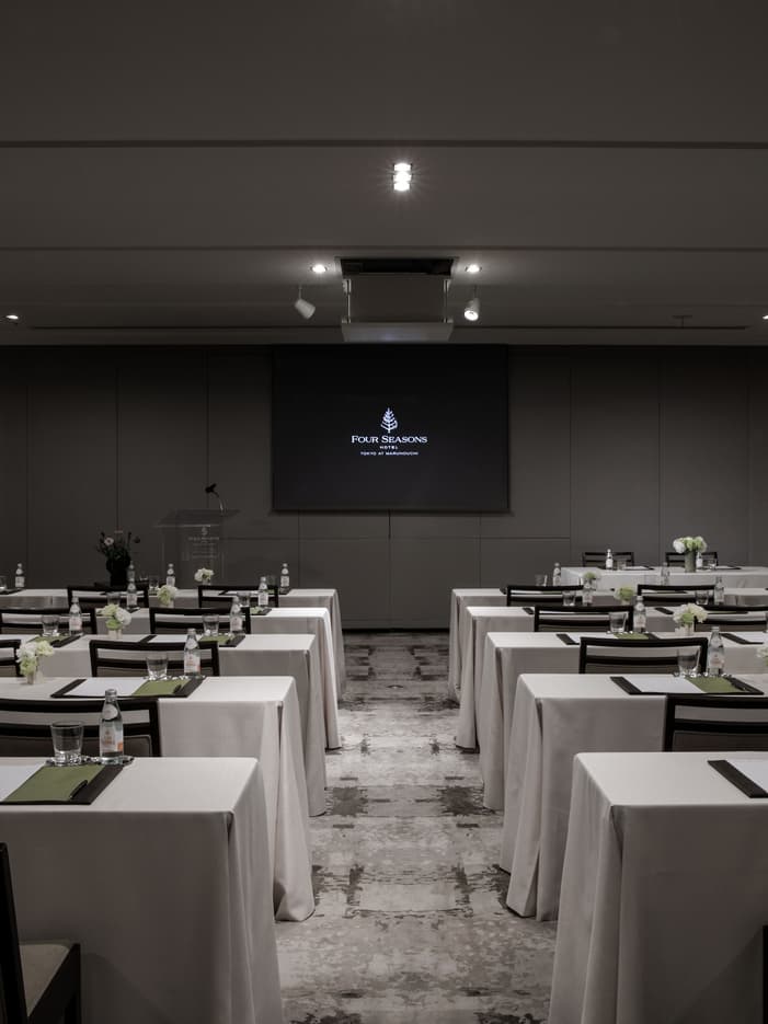 東京駅直結、2時間で実現するフォーシーズンズならではの上質なミーティング。 ライトグレーを基調とした落ち着きある空間で、ランチョンミーティングやセミナーを。会場利用からお食事、プレゼンテーション設備まで揃え、効率的で印象に残るビジネスシーンをサポートいたします。