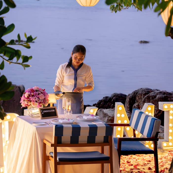 Celebrate love the island way with rak na, meaning “I love you” in Thai. Choose between a private sala set menu, where romance meets the sea breeze, or a chef’s table dinner for two, an interactive culinary journey designed to delight the senses.