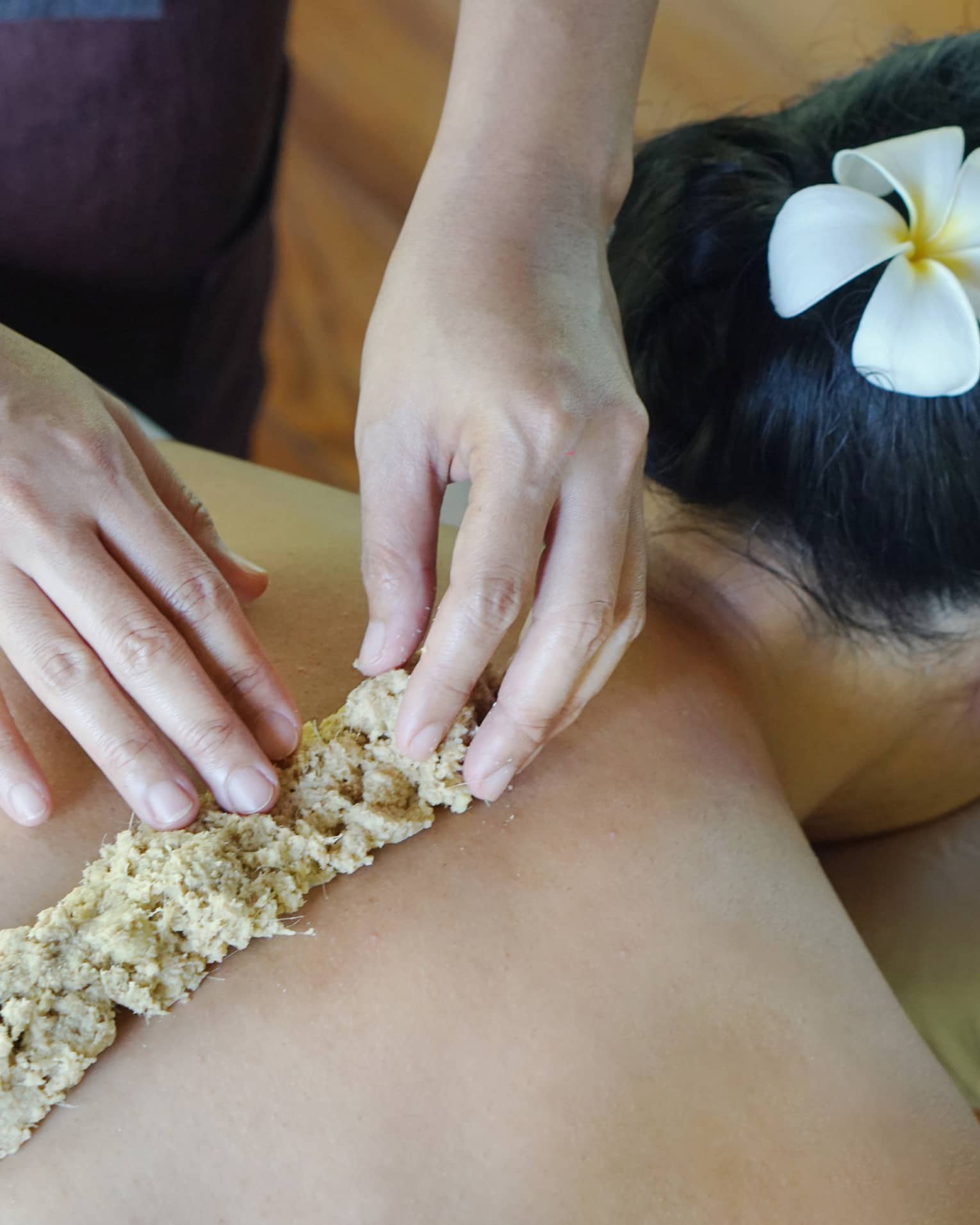 The indulgence begins with a herbal scrub and detox wrap to further purify the body with lom-inspired ginger, galangal and lemongrass. This ritual is followed by a Som-Dul massage for increased flexibility and deep relaxation.