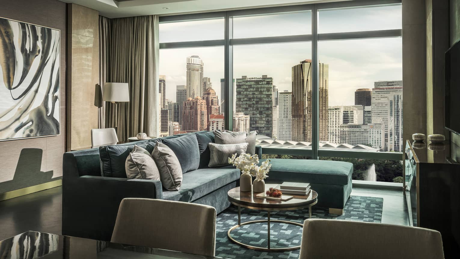 Modern comforts combine with floor-to-ceiling views of KLCC Park’s lush greenery and fountains to offer a captivating look at KL’s calmer side.