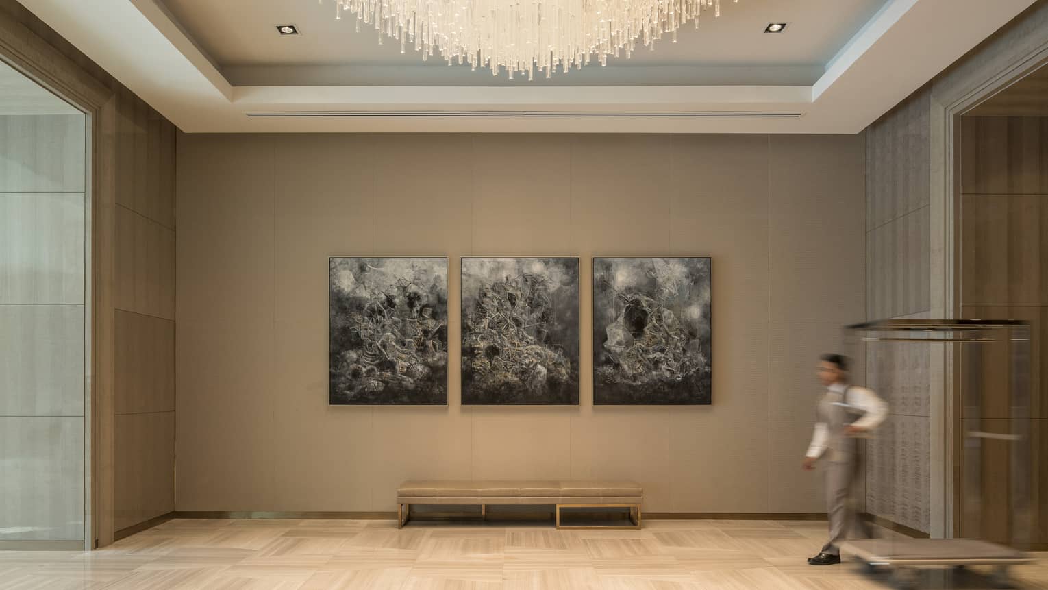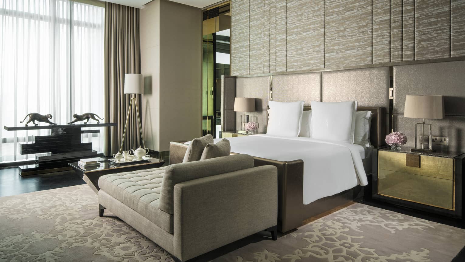 For our foremost VIP guests, our 18th-floor Royal Suite offers pure elegance and an expansive residential-style layout. Entertain in the meticulously designed living quarters adorned with crystal chandeliers, modern art, blown glass and paintings, then sit down to an unforgettable dinner alongside a full wall of windows.