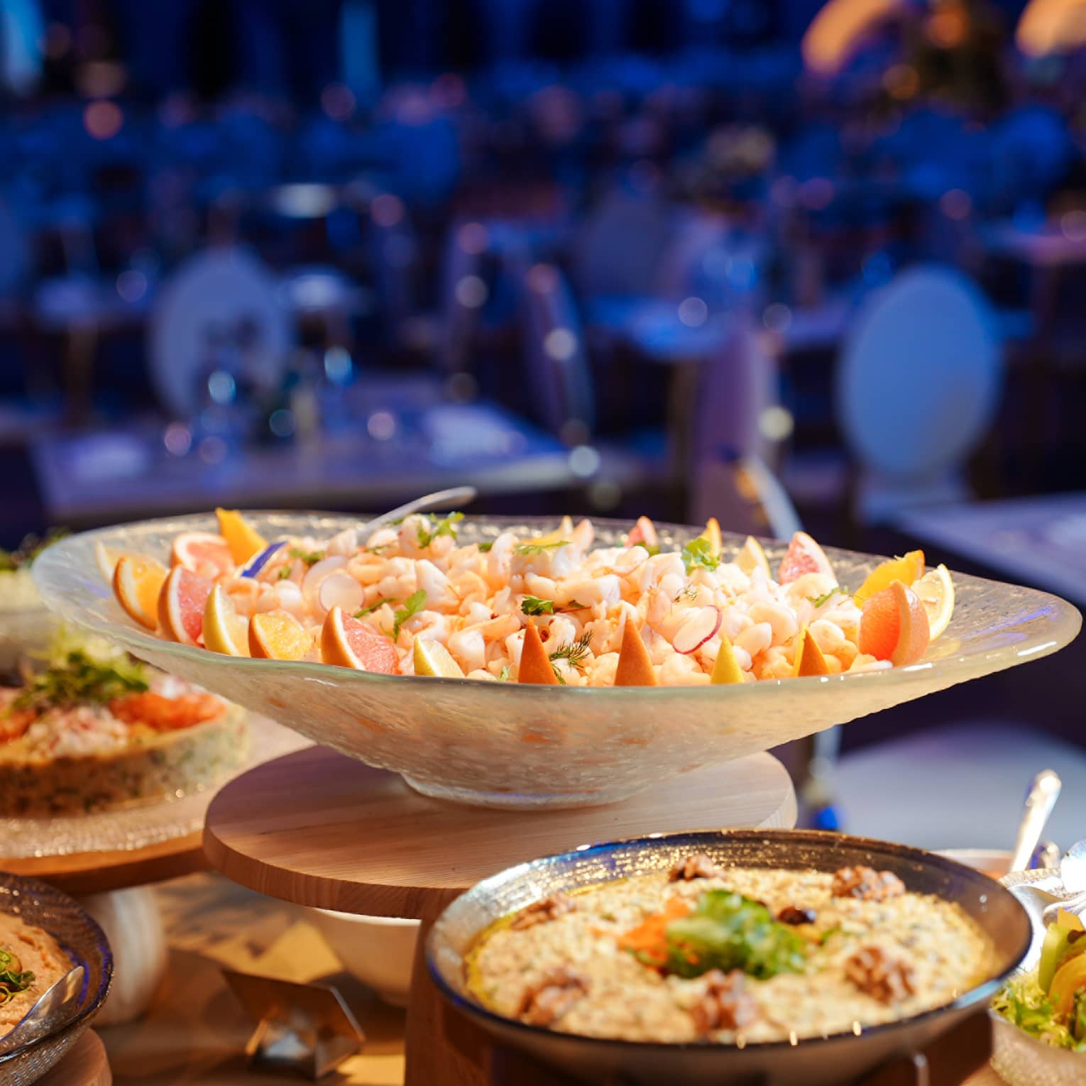 Weekly rotating Ghabga menus showcase regional and international flavours, from mezze and live stations to premium dates, cheeses and a decadent dessert room of traditional sweets and indulgent treats. Experience nightly performances by oud and organ musicians. KWD 29 per person, children ages 5 to 11 enjoy a 50% discount; complimentary for children below the age of 5.