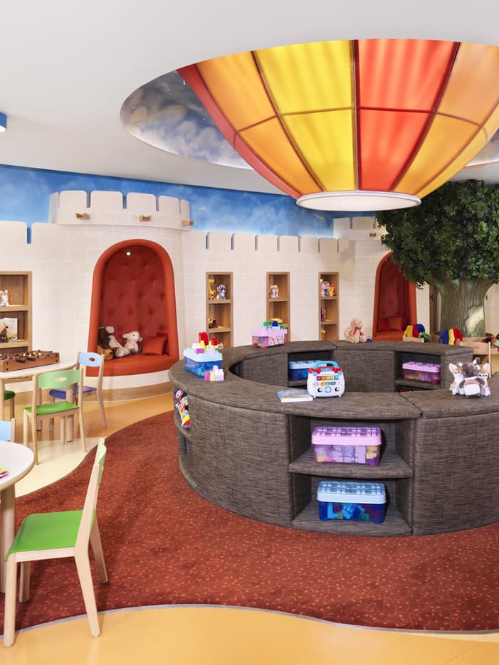 EXCITEMENT IN THE DESERTWith a colourful desert-safari theme, our creative play space features flooring inspired by sand dunes and a desert castle that’s ready to capture kids’ imaginations.