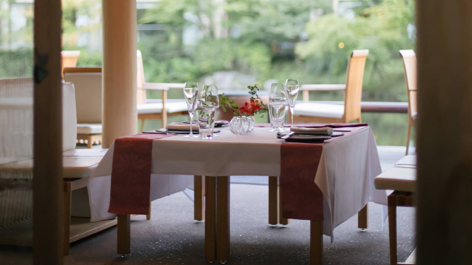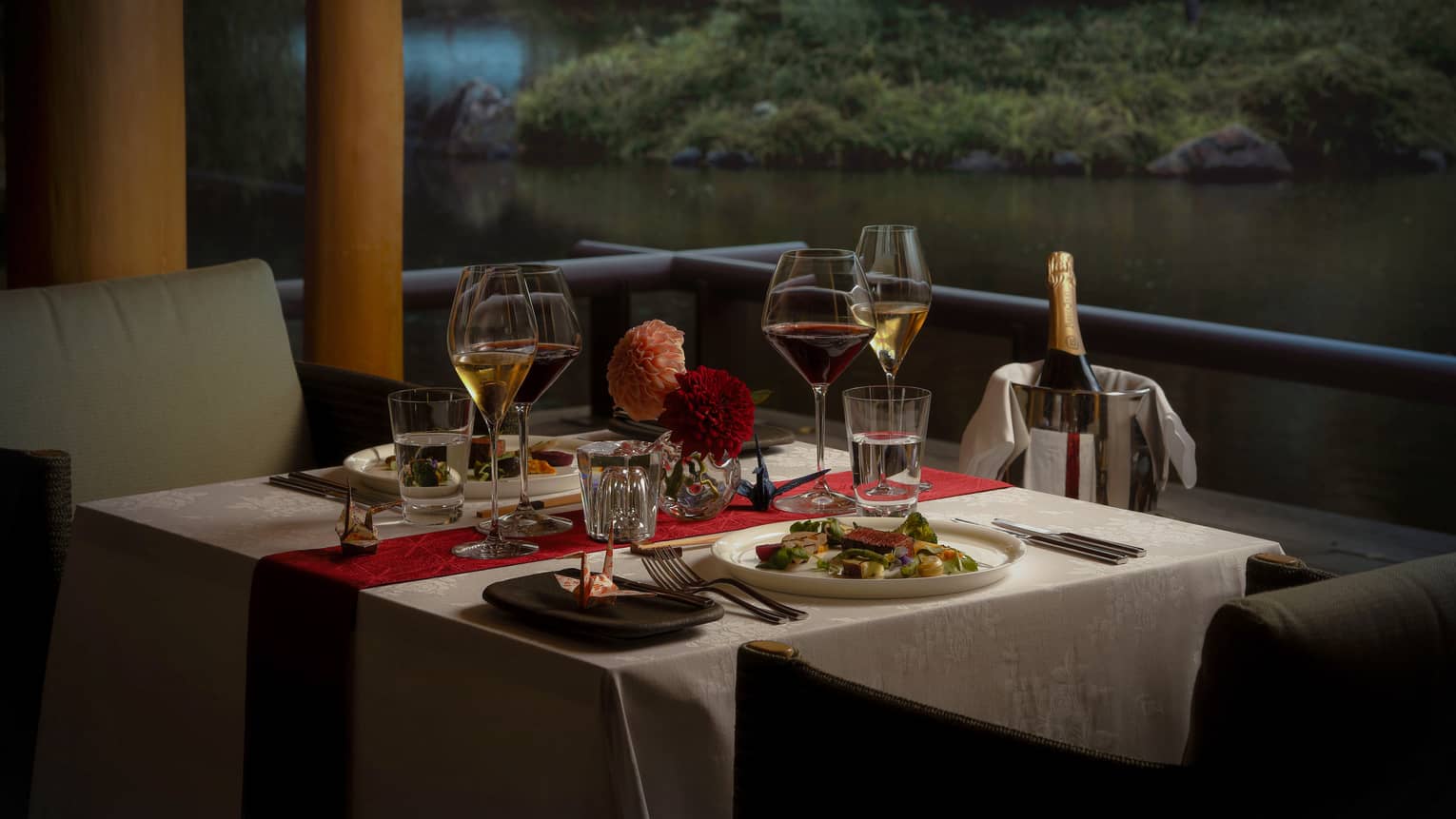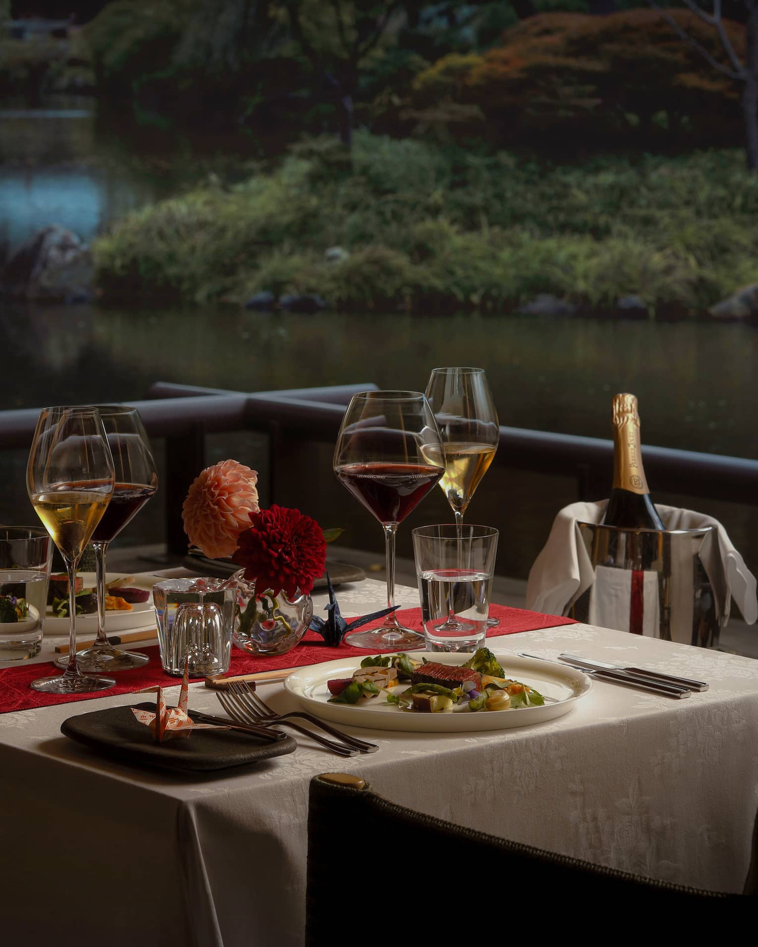 Step into Shakusui-en, our 800 year-old pond garden where tranquillity meets romance. Enjoy a seven-course menu celebrating Kyoto’s fine seasonal ingredients – from delicate canapés and fresh seafood to charcoal-grilled dishes and Wagyu beef. Each course harmoniously blends authenticity and innovation for an unforgettable dining experience.