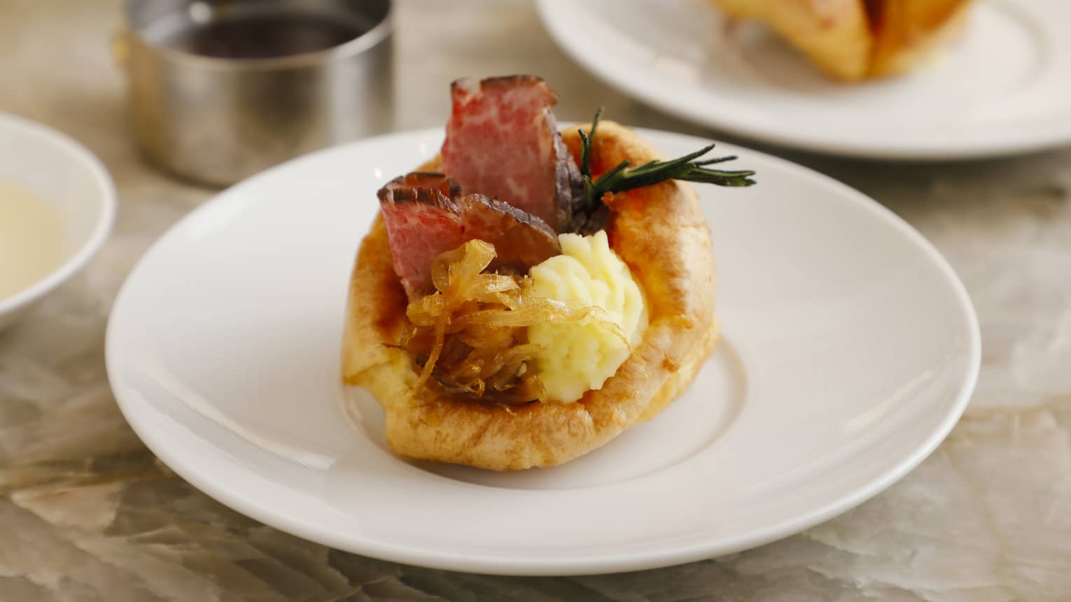 Crisp on the outside and light within, this Yorkshire pudding is filled with roasted Wagyu beef, smoked mashed potatoes and deeply caramelized onions – an expression of EMBA Kyoto Grill’s signature style. Chef Harada’s recommended dish is finished with a rich, savoury jus, capturing the full essence of the meat.