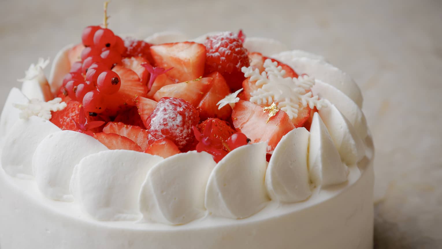 Our Christmas shortcake makes a joyful centrepiece for your holiday gathering. Sponge made with free-range eggs is paired with fresh cream and Amaou strawberries. 15 centimetres: JPY 7,000; 12 centimetres: JPY 5,000. Orders accepted through December 15. Pickup available December 20 to 25.