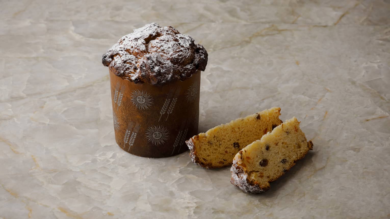 Soft and buttery, our panettone reveals citrus fruit and sultanas soaked in fine liqueur. JPY 2,000 each. Orders accepted through December 15. Pickup available December 1 to 25.