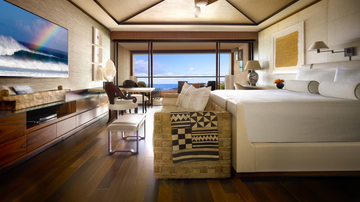 Leave the balcony doors open and wake up to panoramic ocean views and the soothing sounds of the Pacific. Our 213 rooms and suites blend organic materials and authentic Hawaiian details to create sophisticated indoor-outdoor living spaces.