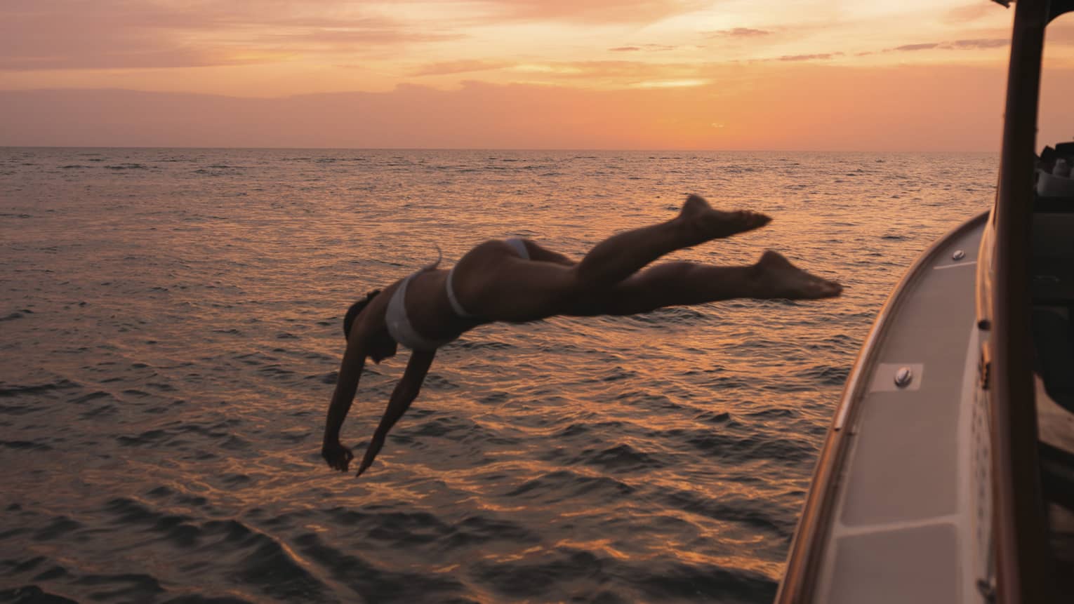 As the sun sets, enjoy a beach picnic with canapés, tropical fruits and champagne. Savour the final moments of daylight, the warm breeze and the gentle ocean waves, making the most of your time together before night falls.