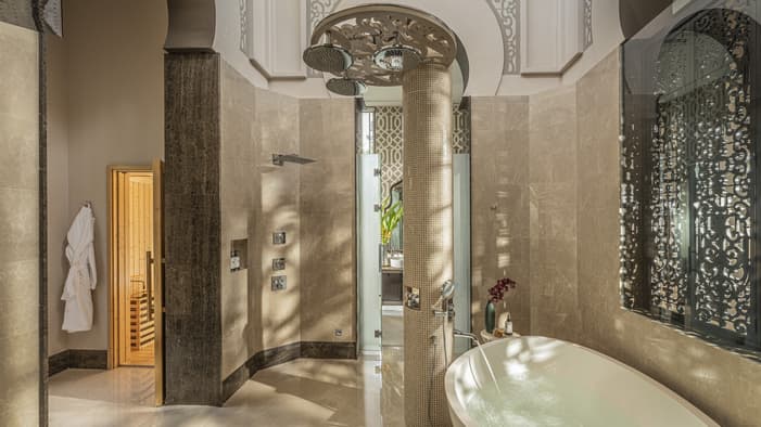 Soaring wood-beamed ceilings and breezy indoor-outdoor living spaces show off the finest in Malay craftsmanship, while hammam-style bathtubs and ogee-arched doorways lend a bit of Moorish flare to our unique accommodations.