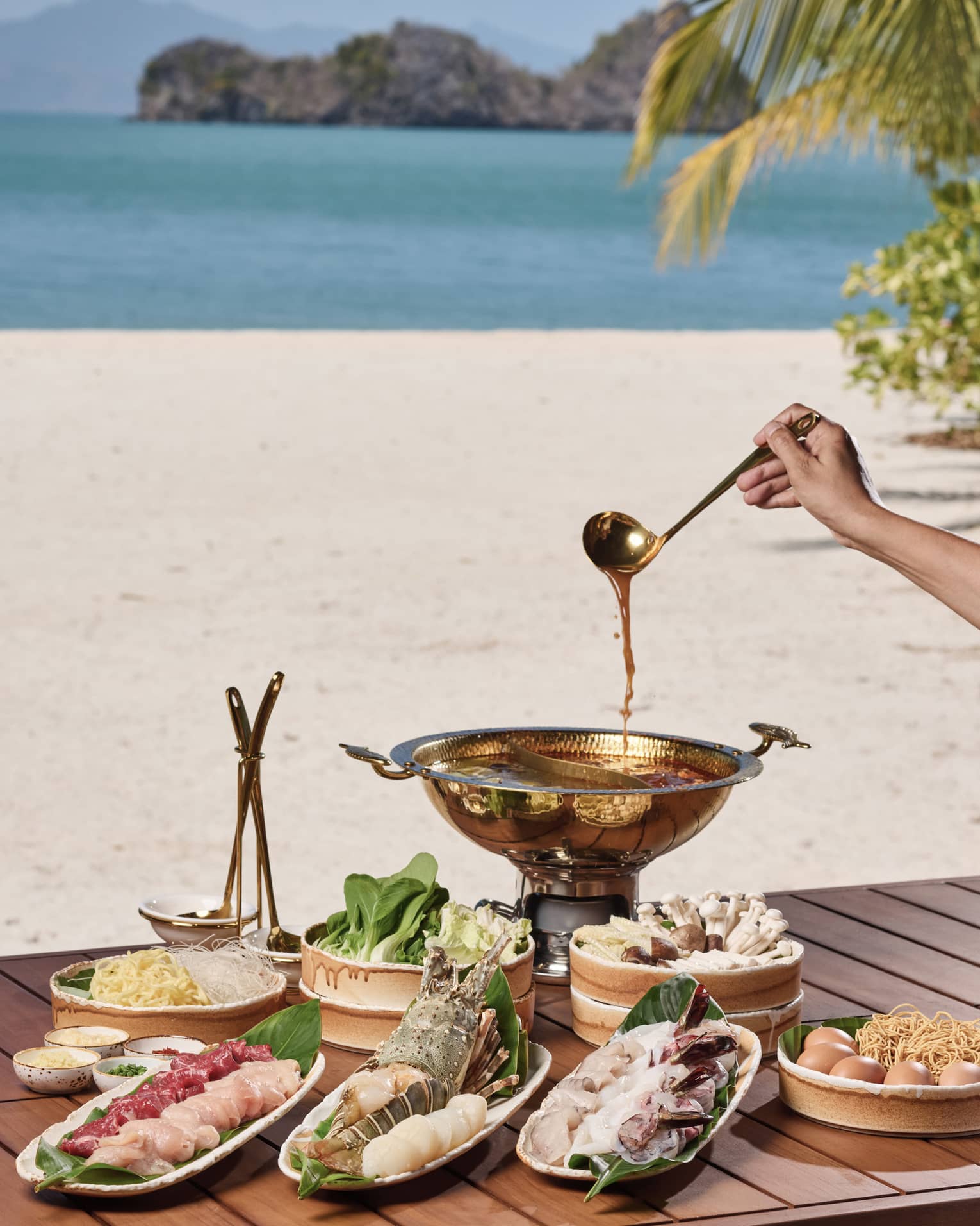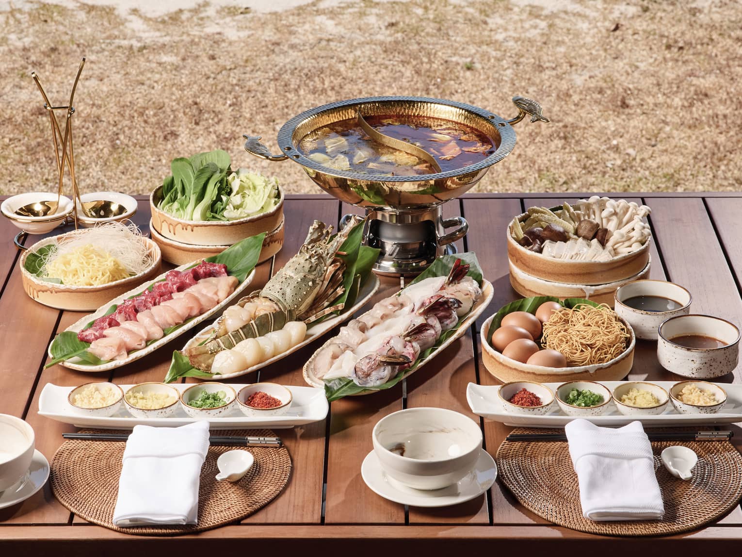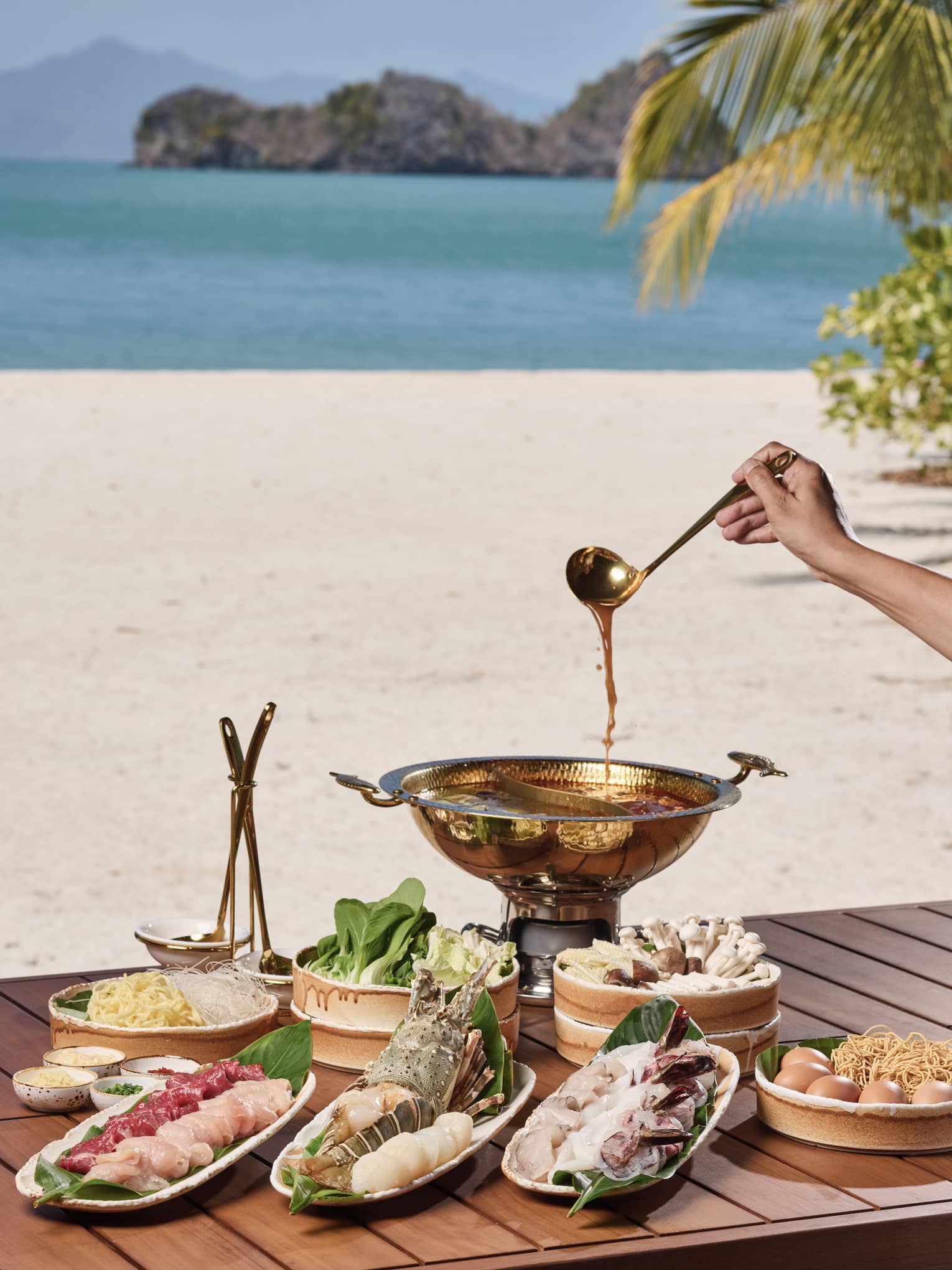 Savour a comforting hot pot by the sea, set against the tranquil views from your villa’s private patio. Enjoy flavours of the ocean paired with fresh seafood. For the Beach Villa, the location will be the patio. For the Pavilion, the location will provided based on availability.
