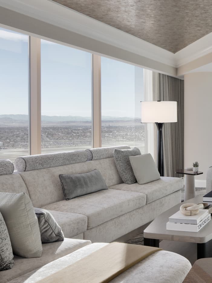 Emulating the morning light of the Mojave Desert, reflecting the dramatic beauty and grandeur of the Hotel’s natural surroundings